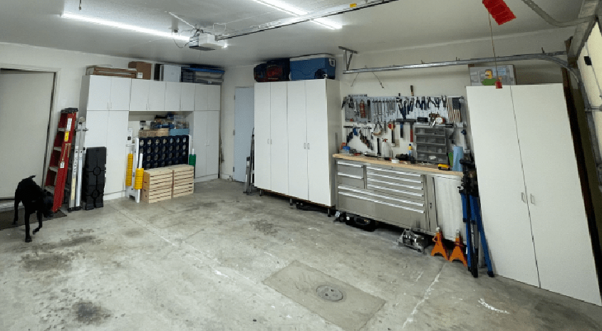Before any equipment came in, the real work began. We had storage cabinets on all three garage walls—plus a small workbench area. I had to: